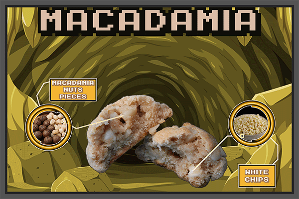 A treasure of unmatched elegance, the Ivory Relic is a vanilla cookie studded with buttery macadamia nut pieces and creamy white chips. Each bite is a harmonious blend of textures and sweetness, like a rare gem unearthed from a dragon’s ancient hoard.