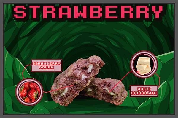 Soft and radiant, the Roselight Gem is a strawberry-infused cookie dough delicately studded with creamy white chocolate. Its sweet, fruity flavor sparkles like a rare pink gemstone, making it a true treasure from a dragon’s vibrant hoard.