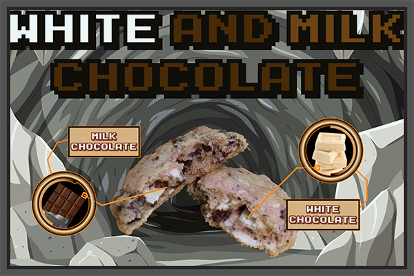 White and Milk Chocolate pieces in a vanilla base dough.